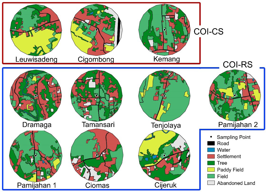 Figure 3.Landscape map in 300 m radius from sampling point in Bogor Regency that grouped by COI-CS and COI-RS.