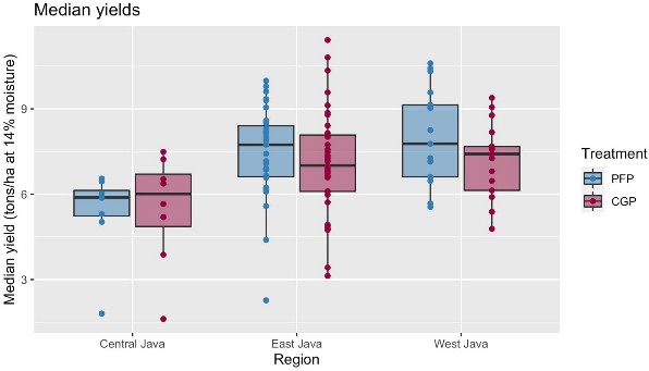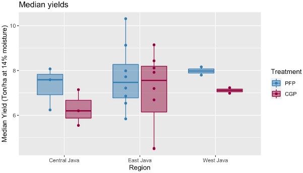 Figure 5.Yield differences between PFP and CGP differentiated for each province in Java Island, Indonesia.