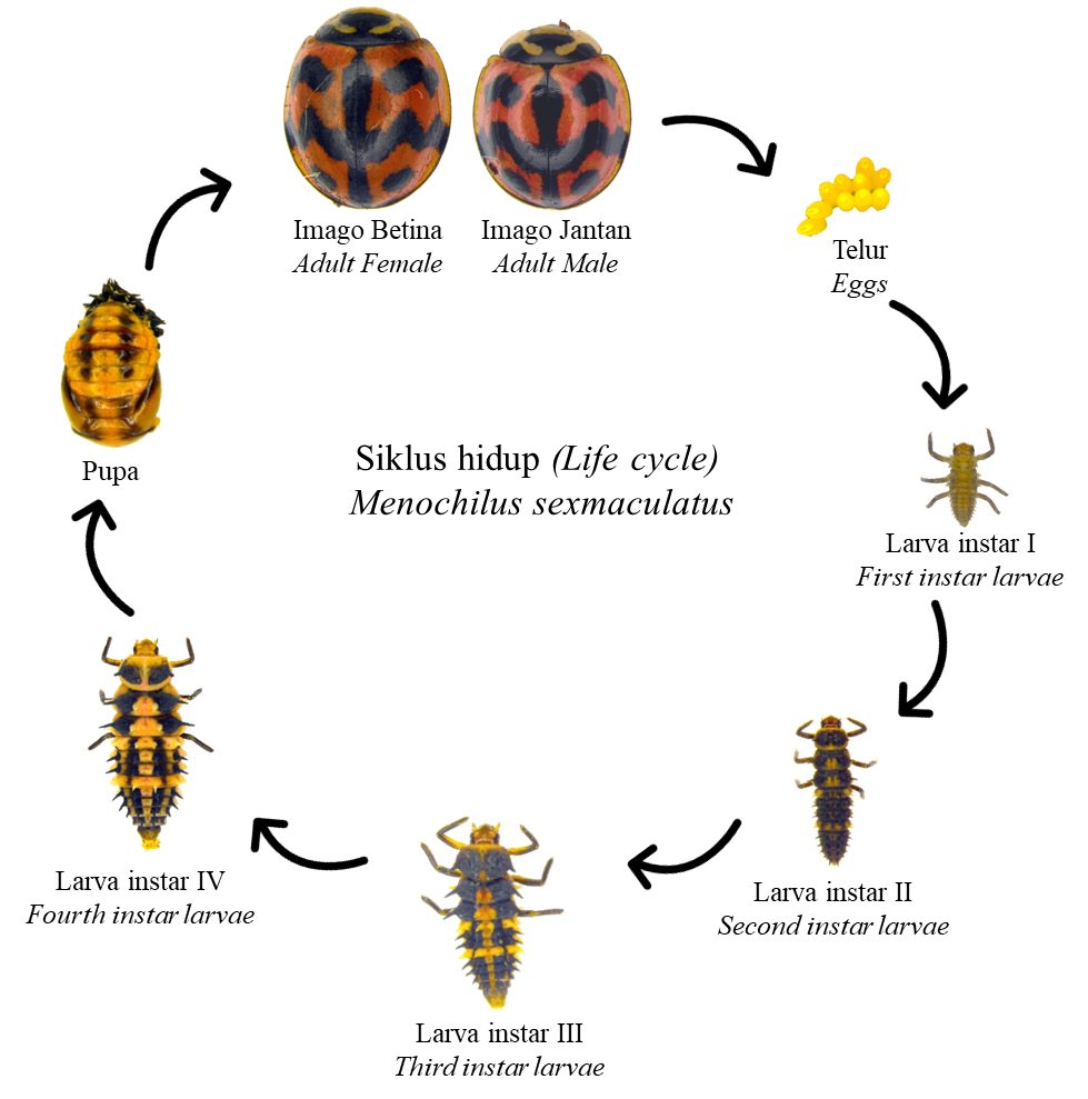 Gambar 2 (Figure 2).Siklus hidup Menochilus sexmaculatus.(Life cycle Menochilus sexmaculatus.)