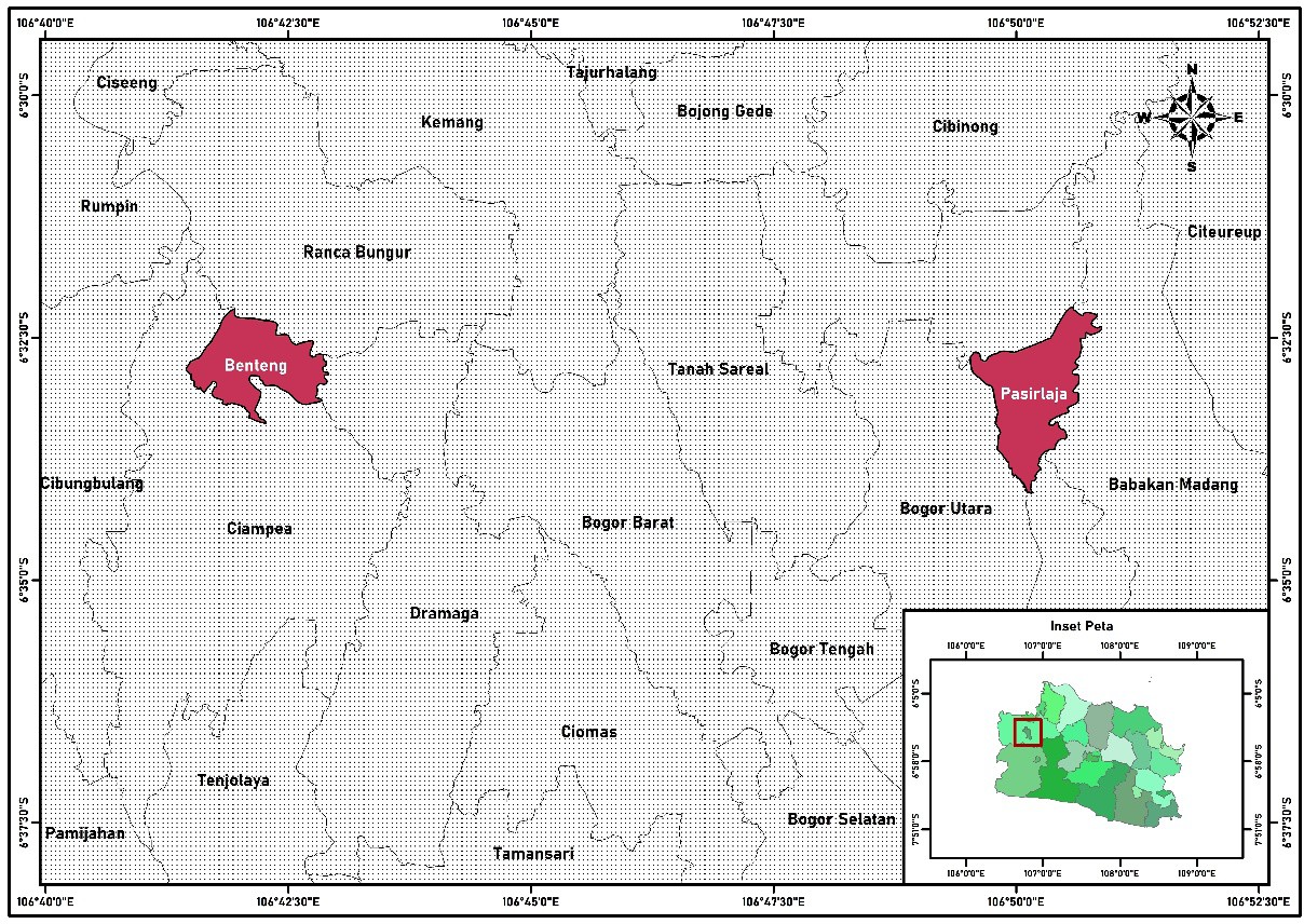 Gambar 1.Peta lokasi penelitian di Kabupaten Bogor, Jawa Barat.