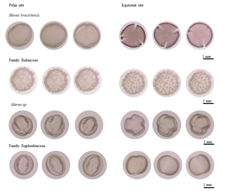 Overall, in the fragmented forest and rubber plantation habitat, we found that 4 individuals of 7 T. laeviceps collected pollen only from H. brasiliensis (Family Euphorbiaceae), while three other individuals also collected a single pollen type from Rubiaceae, Caparacae, and Euphorbiaceae families, respectivelyTable 4. As predicted, the pollen collected by bees in the fragmented forest was more diverse than the other land usesTable 4. A single type of H. brasiliensis pollen was collected by the bees in rubber plantationsTable 4, supported by (Heard, 1999), who found stingless bees usually forage in one plant species in each bout. It is presumably due to the blooming season; rubber plantations could supply adequate pollen resources for the stingless bees.